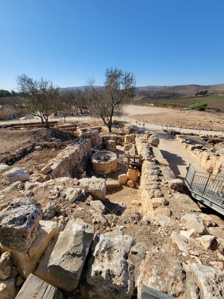We drove to Tel Shiloh in the daylight. It was a beautiful view, uphill, and downhill. Some hillsides were terraced. Tell Shiloh is where the Tabernacle was set up when the children of Israel settled in the land of Canaan. The Philistines destroyed the tabernacle in the prophet Samuel’s day. This is also where Andrew has been helping with the archeological dig and has helped uncovered a corner of what they believe is  the Tabernacle foundation. It was interesting to hear Andrew describe how the archaeological dig is done, how they brush with fine brushes, and sift the dirt to find small objects.