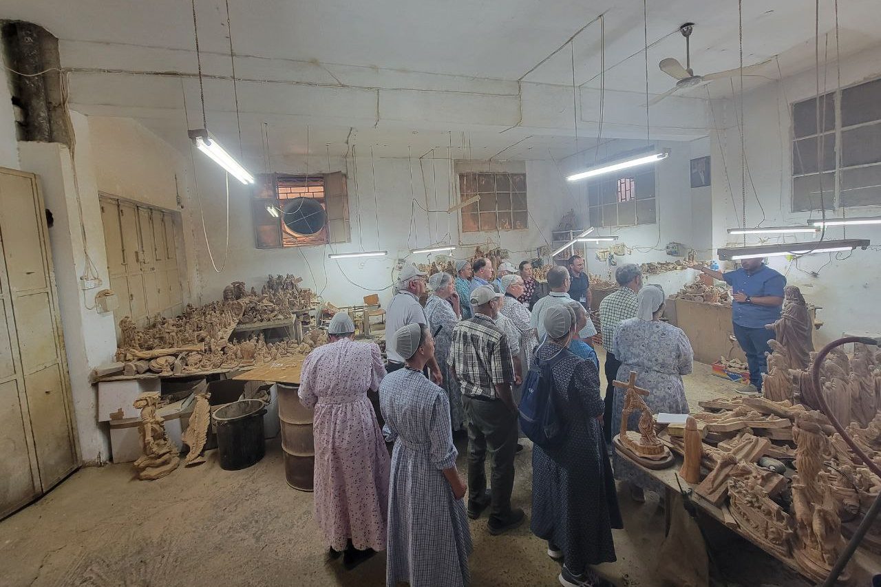 After lunch, we went to the olive factory close beside the restaurant. The grandson of the founder showed us how they carve olive wood into figurines. Hand carved items can take up to four months to complete. They also have a copy machine that they can make copies faster than that. In the gift shop they were high-pressure salesmen to some of our group. It was beautiful work but expensive in some ways. They did also have some things that were not wood carvings. I found a bottle of Spikenard there like Mary anointed Jesus’s feet with.  Supposedly anyway.