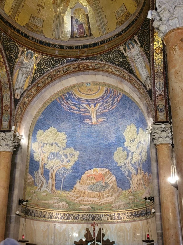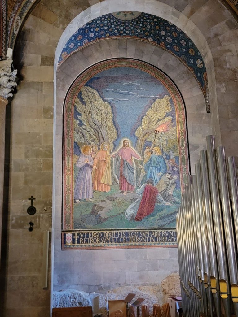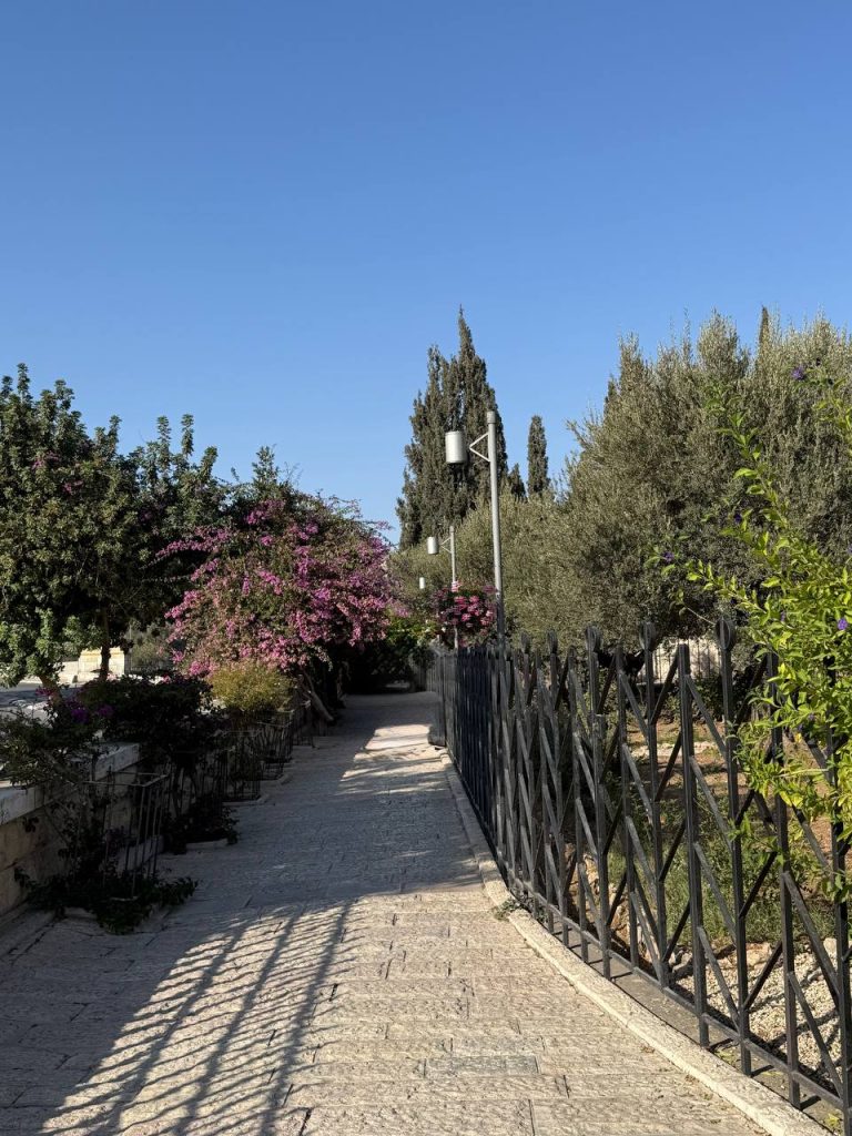 Almost at the bottom of the hill we stopped at the Garden of Gethsemane and the Church of all Nations. Here we sat down for a time of teaching on the suffering of Jesus. After a time for pictures we crossed the street to a private garden where we had a worship service led by Andrew and a time of singing, reflecting on Jesus’s suffering in the garden. I was challenged by the thought of Jesus’s disciples not being able to stay awake and stand by Him in His time of agony of soul. May we stand with our brothers and sisters going through difficult times and not turn away from their pain and suffering.