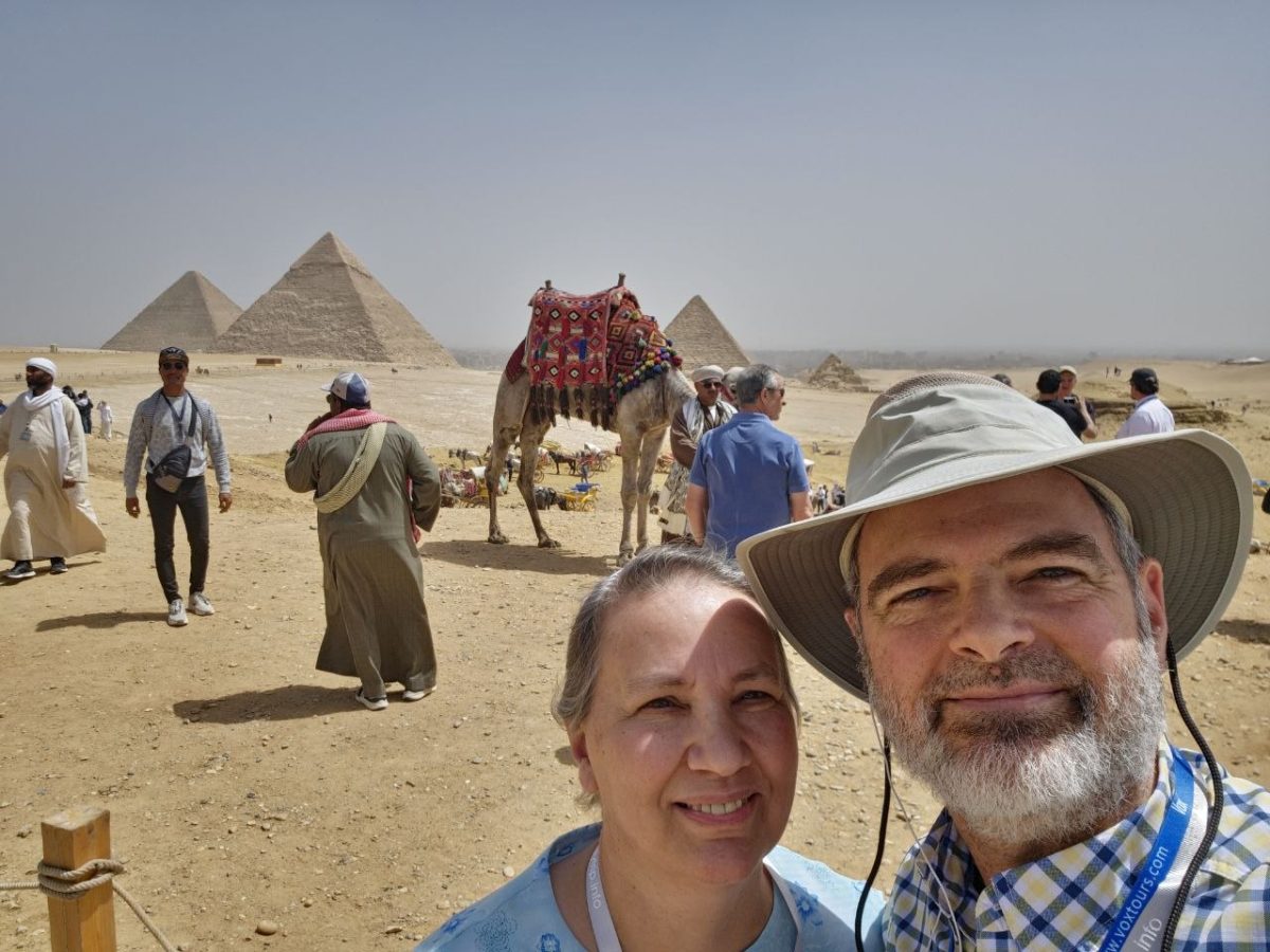 Entering the Great Pyramid of Giza, tomb of Pharaoh Khufu.